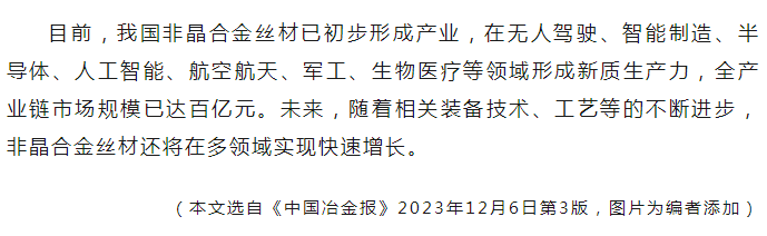 中國(guó)冶金報(bào):非晶合金絲材蓬勃發(fā)展的背后