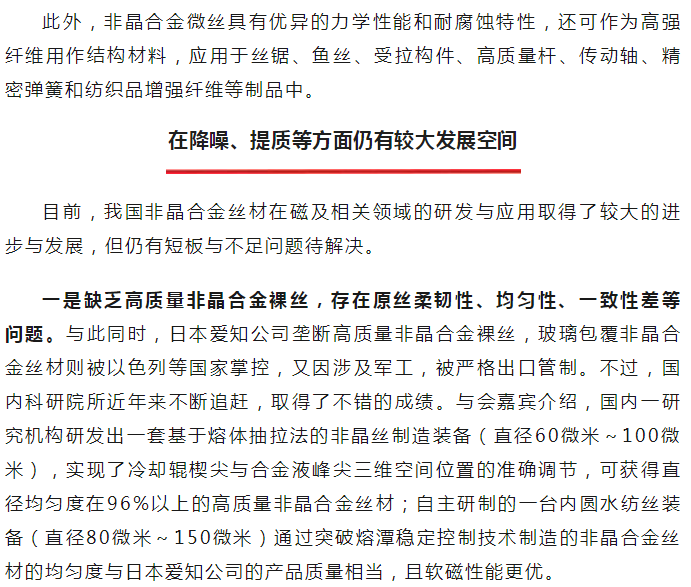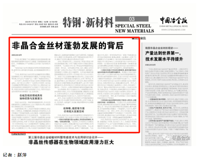 中國(guó)冶金報(bào):非晶合金絲材蓬勃發(fā)展的背后